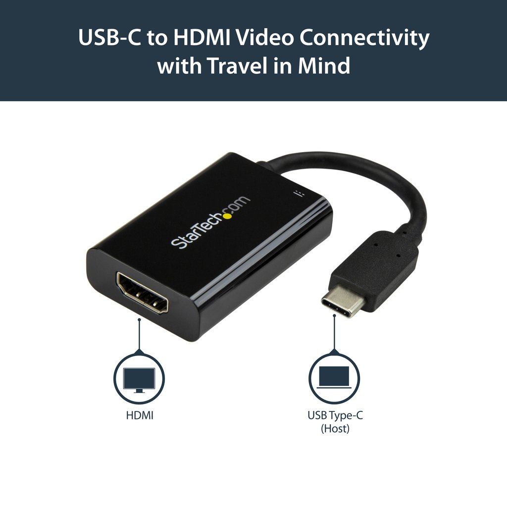 StarTech.com USB C to HDMI 2.0 Adapter with Power Delivery – 4K 60Hz USB Type-C to HDMI Display Video Converter – 60W PD Pass-Through Charging Port – Thunderbolt 3 Compatible – Black (CDP2HDUCP)