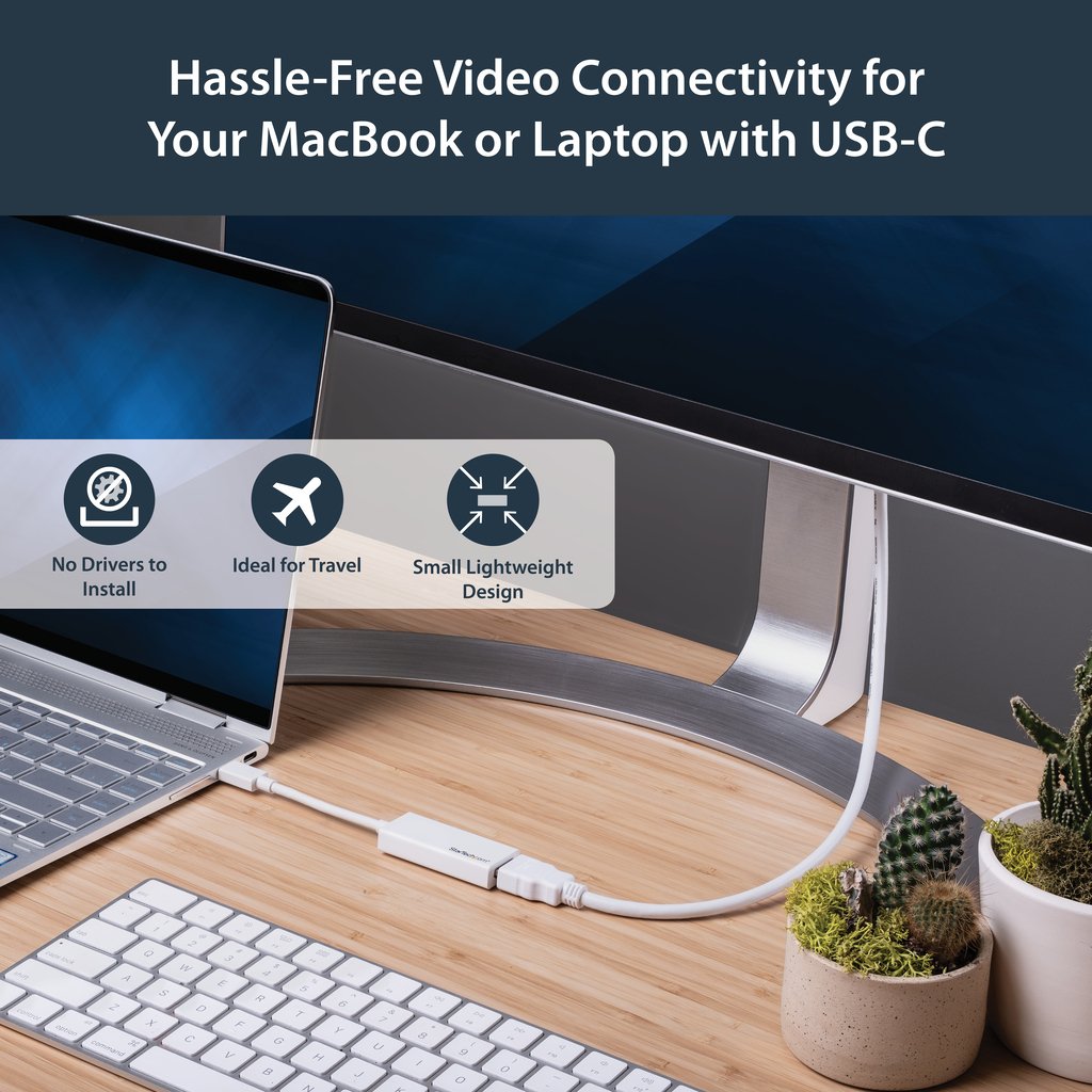 With its all-white design, this USB-C video adapter is the perfect accessory for your MacBook with USB-C. The adapter is compact and lightweight so it fits easily into your MacBook bag or carrying case, which is great for BYOD (Bring Your Own Device) applications at the office. While the adapter looks great next your Mac and HP ENVY, it also works with any USB-C computer that supports DisplayPort ALT mode, such as your Windows® laptop.