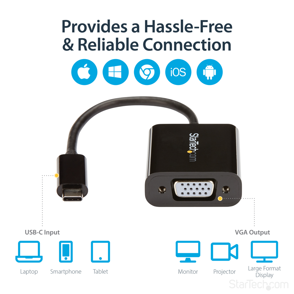 StarTech.com USB-C to VGA Adapter – Black – 1080p – Video Converter For Your MacBook Pro – USB C to VGA Display Dongle – Type-C to VGA Converter (CDP2VGA)