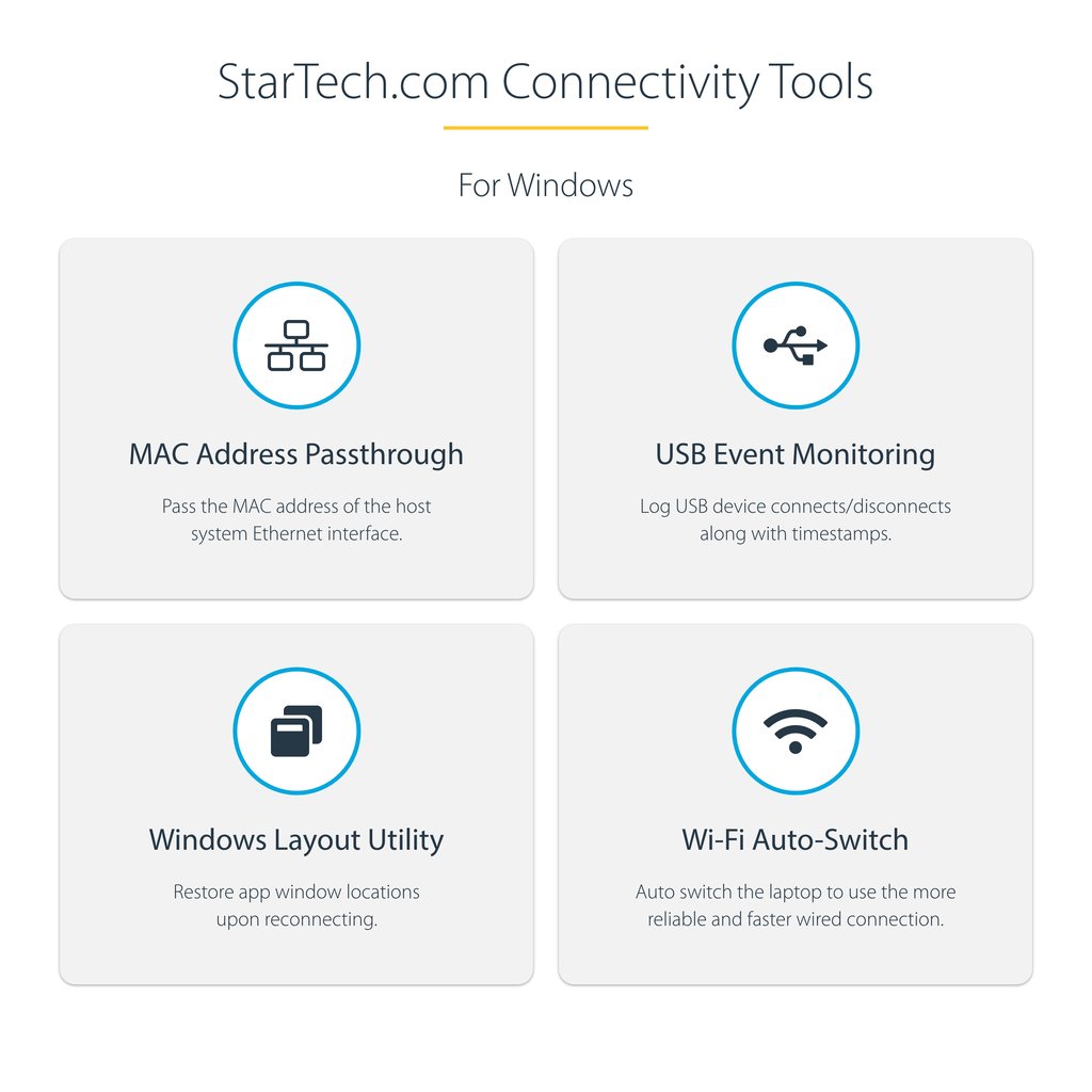 Developed to improve performance and security, StarTech.com Connectivity Tools is the only software suite on the market that works with a wide range of IT connectivity accessories. The software suite includes: