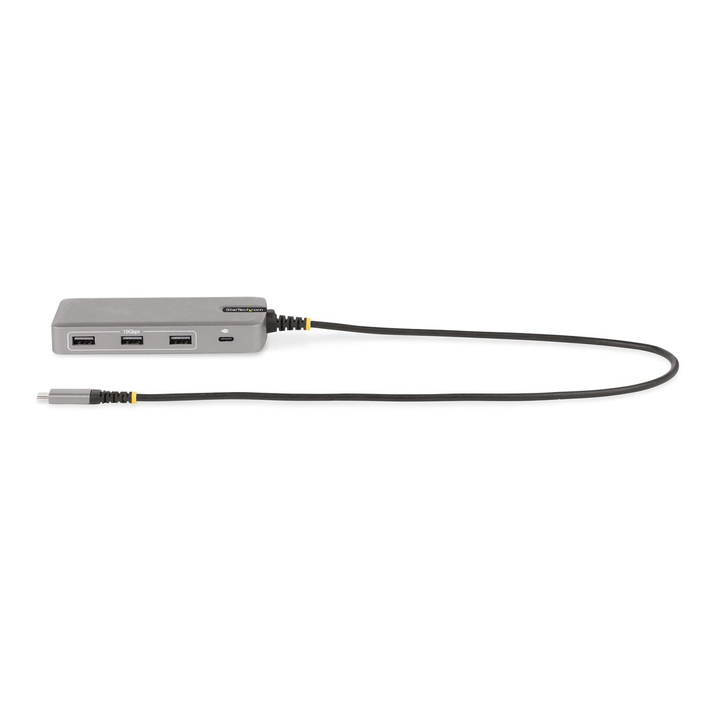 The USB-C to USB 3.2 Gen 2 (10Gbps) hub features three USB-A ports for connecting USB HID devices and/or peripherals (e.g., storage devices).