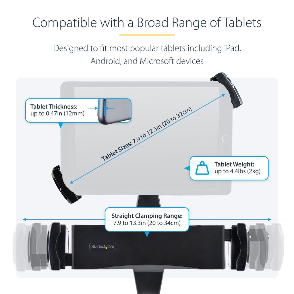 StarTech.com VESA Mount Adapter for Tablets 7.9 to 12.5in – Up to 2kg (4.4lb) – 75×75/100×100 VESA Patterns – Universal Anti-Th