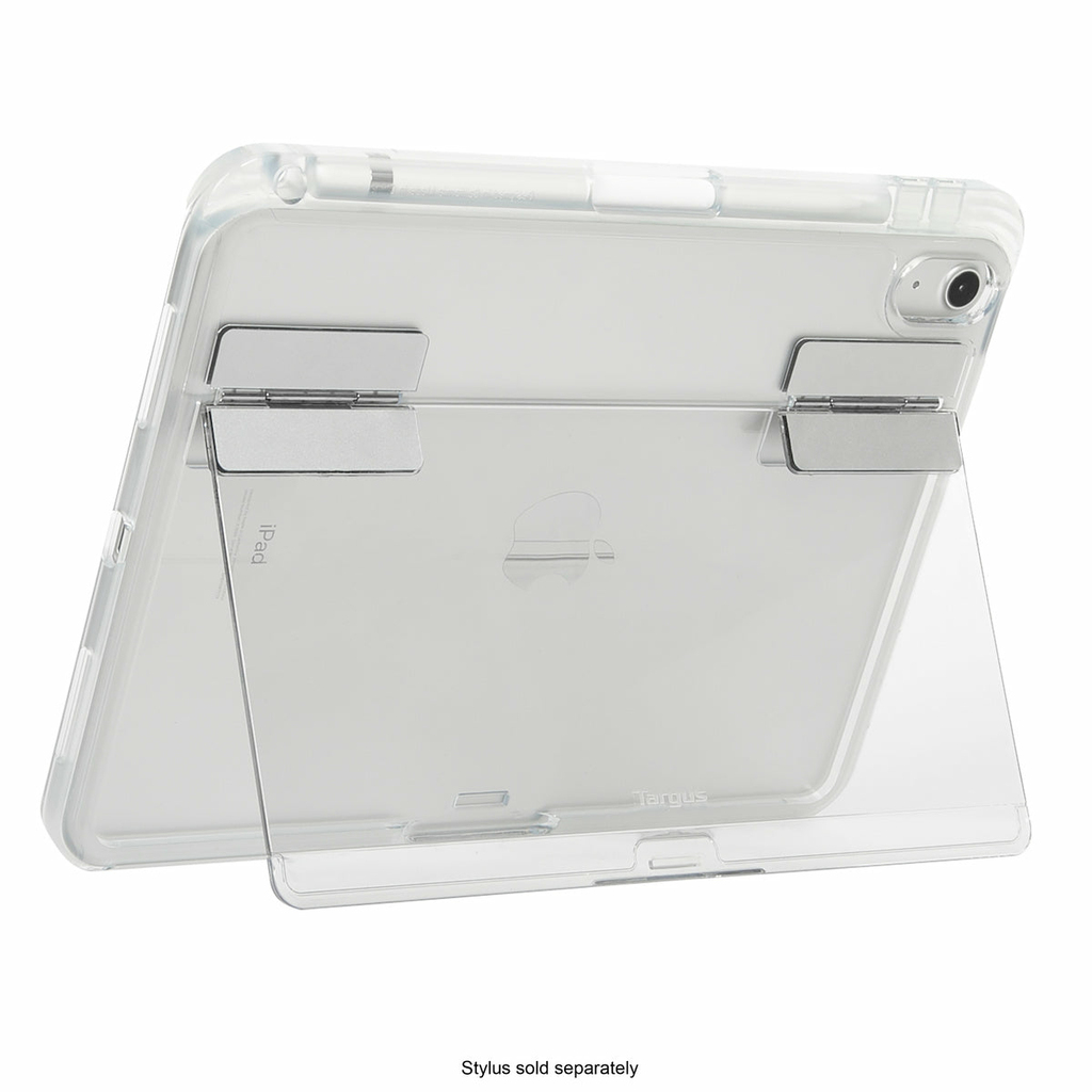 Let your iPad stand out with the Targus® Click-In™ Clear Case + Kickstand for iPad® (10th gen.) 10.9-inch. Complement your colorful new iPad with this clear case that’s engineered for durability without the extra weight. Featuring a shock-absorbent tray with wrap-around bezel and reinforced corners, it delivers military-grade drop protection (up to 4 feet/1.2 meters)* in a slim design. Its built-in kickstand flips out to offer hands-free viewing in multiple angles while in landscape mode, making it easy to watch the screen at nearly any angle. Plus, enjoy added efficiency with an integrated holder for your Apple Pencil® or stylus (Pencil sold separately by Apple®).