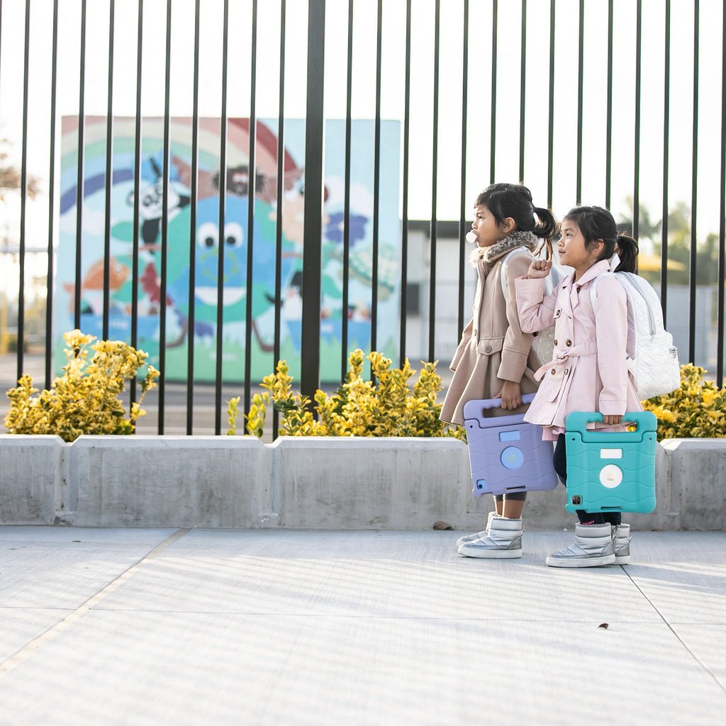 A convenient carry handle doubles as a stand, so children can grab and go or set it and stand it for their viewing preference. Precision cutouts give full access to controls, ports, and cameras, so it’s easy to enjoy their favorite tunes, check out an app, or join in on their latest virtual class without missing a beat.