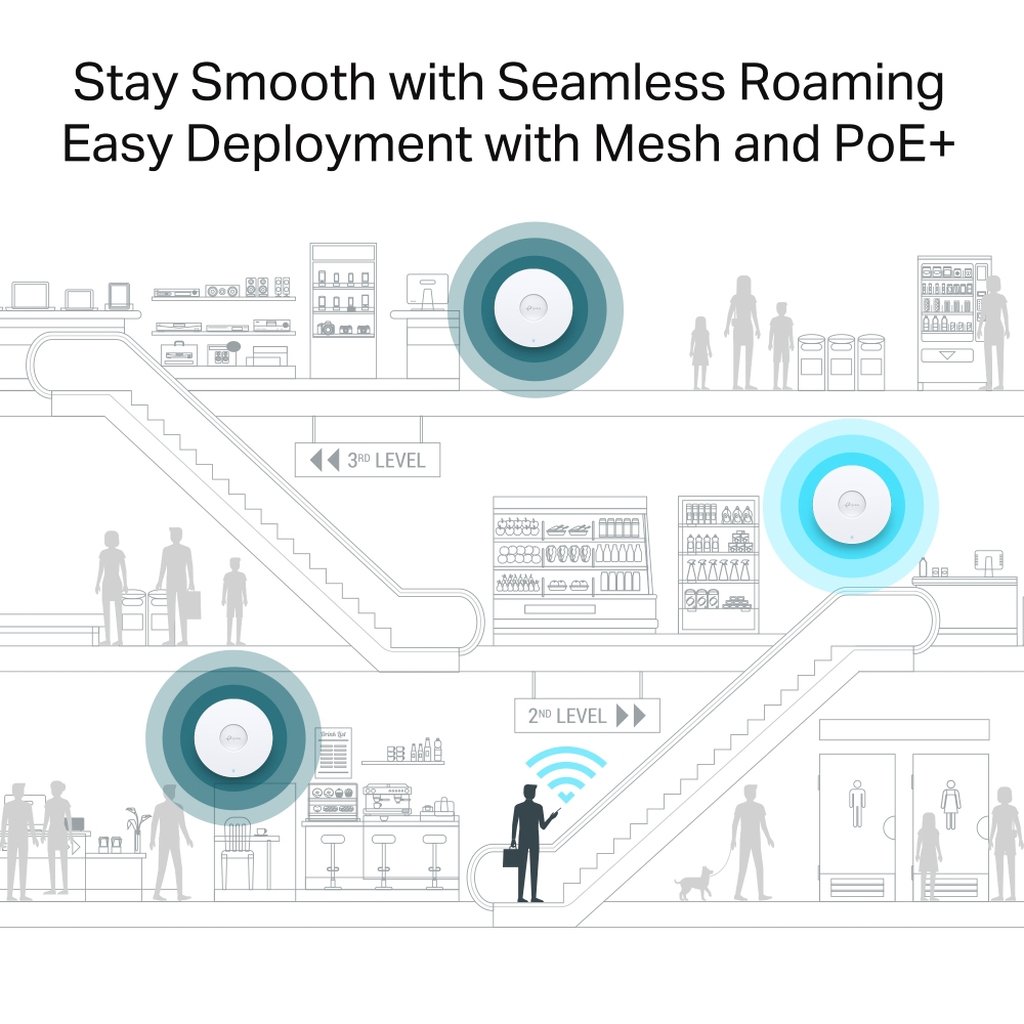 With Mesh technology, Omada APs save you from redundant wires by wirelessly extending your WiFi signal farther and more flexibly to hard-to-wire areas.