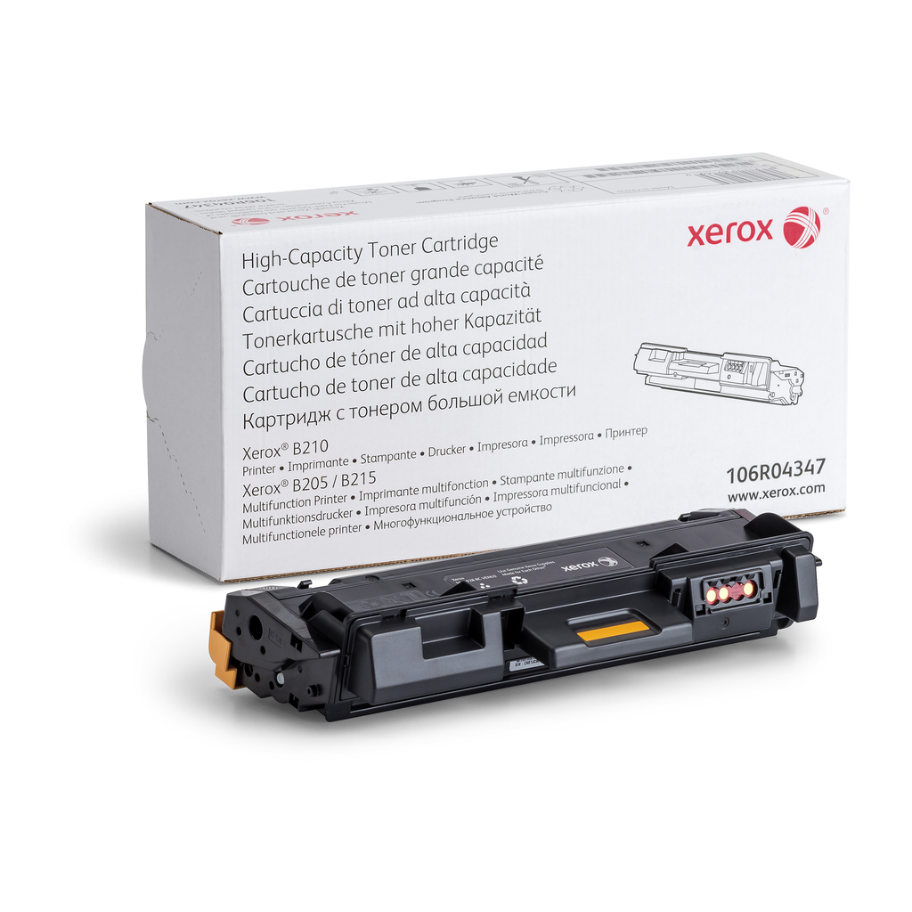Xerox Genuine Xerox® B205 Multifunction Printer/B210 Printer/B215 Multifunction Printer Black High capacity Toner Cartridge (3000 Pages) – 106R04347 is specially formulated and tested to provide the best image quality and most reliable printing you can count on page after page. Xerox Genuine Supplies and Xerox equipment are made for each other. Accept no imitations. Compatible toners may risk breakdown of Xerox printers and result in poor print quality and weak colours. With over 75 years’ experience, Genuine Xerox Supplies are something you can rely on.